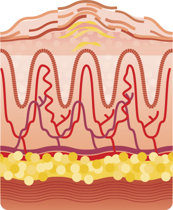Vrchná vrstva pokožky sa nazýva epidermis. Jeho základ tvoria keratinocyty, ktorí žijú v priemere 28 dní. Pri psoriáze sa keratinocyty množia niekoľkokrát rýchlejšie, nestíhajú dozrieť a zostarnúť. Namiesto 28 dní žijú len 4-5 dní!